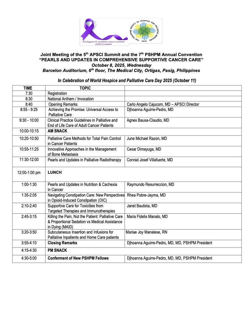 7th Philippine Society of Hospice and Palliative Medicine (PSHPM) Annual Convention & 5th Augusto P. Sarmiento Cancer Institute (APSCI) Summit